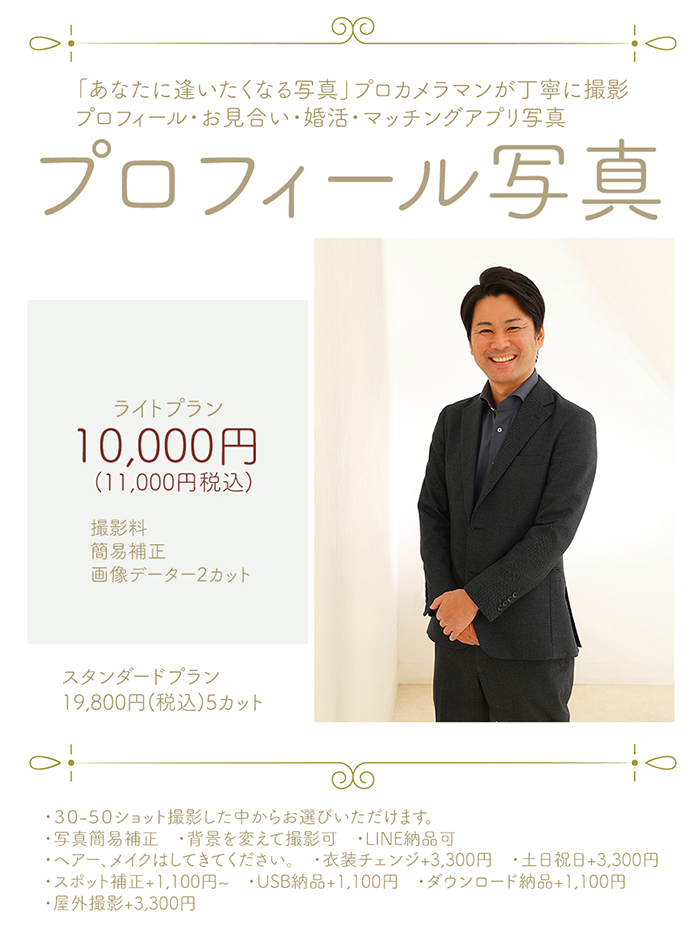 「あなたに逢いたくなる写真」プロカメラマンが丁寧に撮影 プロフィール・お見合い・婚活・マッチングアプリ写真
